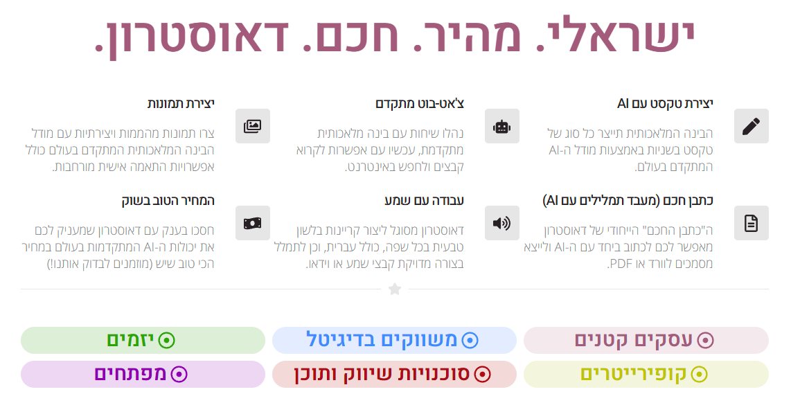 בין אם אתם משתמשים בכלי הכתיבה ליצירת תוכן שיווקי, טכני או אישי, דאוסטרון 2 יספק לכם את כל הכלים הנדרשים להצלחה.