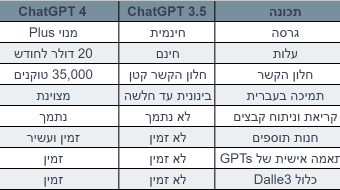 בחינת ההבדלים בין ChatGPT 3.5 ל-ChatGPT 4: