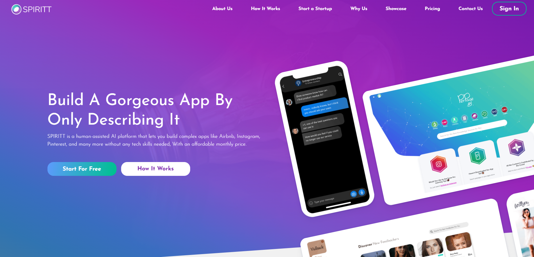 ספיריט משתמשת בבינה מלאכותית כדי לבנות את האפליקציה עצמה. הצ'אטבוט המבוסס AI של ספיריט שואל שאלות ומשתמש בתשובות אלה כדי לבנות את האפליקציה מההתחלה, תוך כדי תהליך מדויק ויסודי שלא מתבסס על תבניות מוכנות מראש.